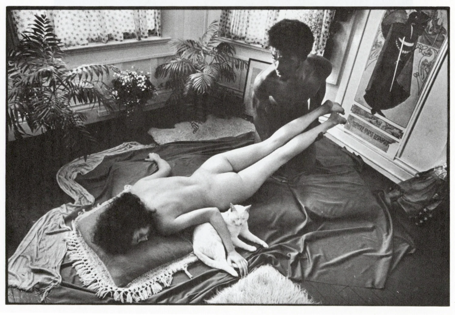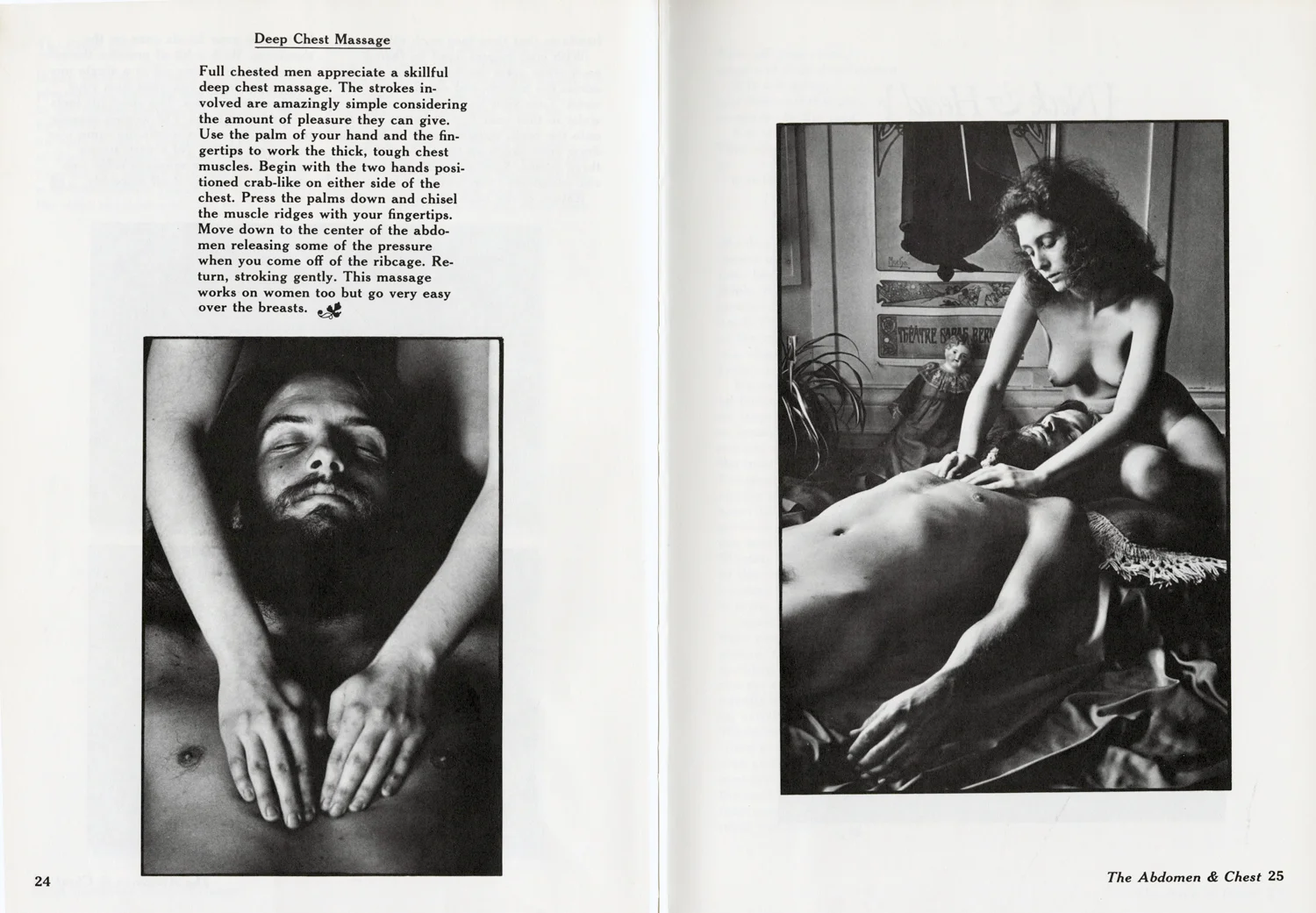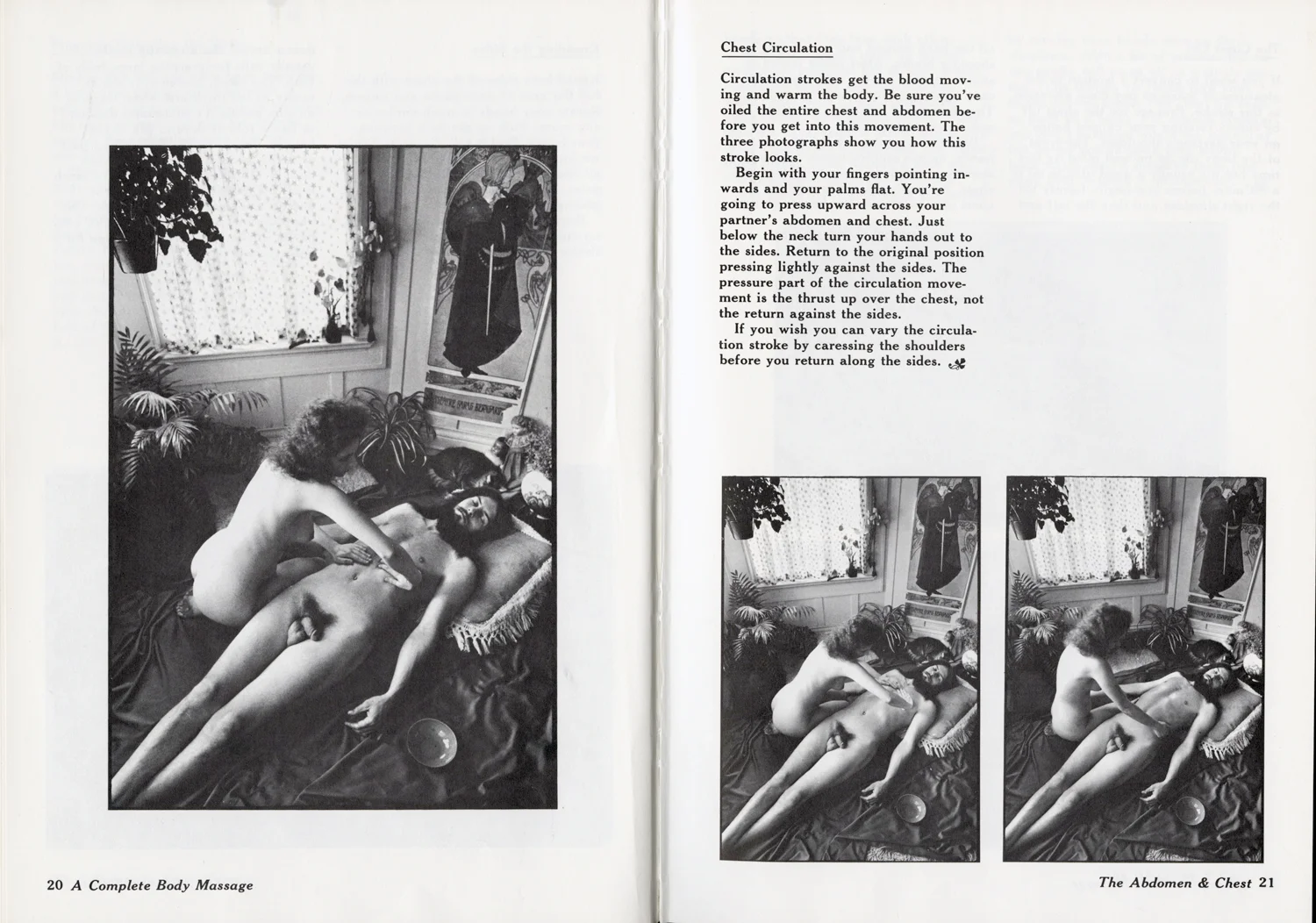 My favorite was The Art of Sensual Massage published in 1972. I forgot it in the back of my friend Erica's car, which proved awkward when her teenage son and a friend discovered it. It's a slice of time. The first thing I noticed, after the terrifying type, was how "natural" everyone was. Hair care in many body areas seems "casual". Then there is the decor. I want that room: a Mucha poster, spider plant, ferns, macrame, and rattan chair. There is even a chess set and candles.