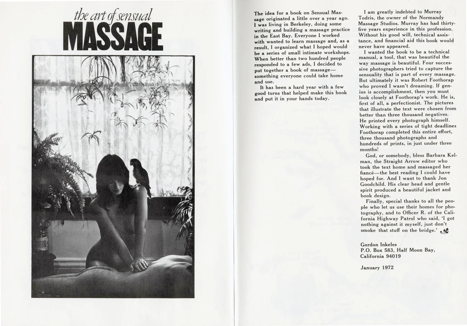 The book is actually pretty good, except for the "Massaging Children" section. This seems wrong. I might be prudish, but I believe being massaged by your naked mother may cause later emotional issues. This is the copy: Children enjoy massage most at the end of the day when they're tired and slowed down. If your child jumps up in the middle of a stroke let it go. They always come back.