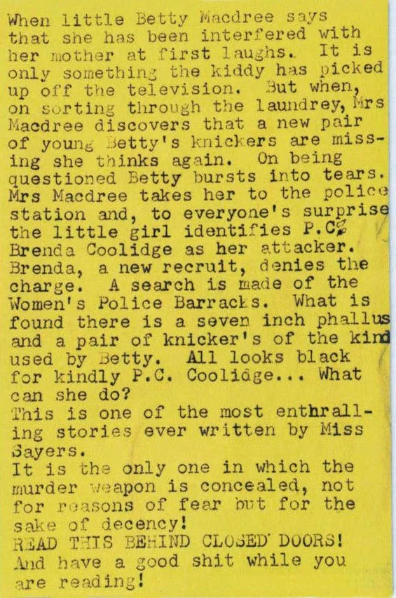 And replacing the original text in the flyleaf of 'Clouds of Witness' by Dorothy L Sayers: