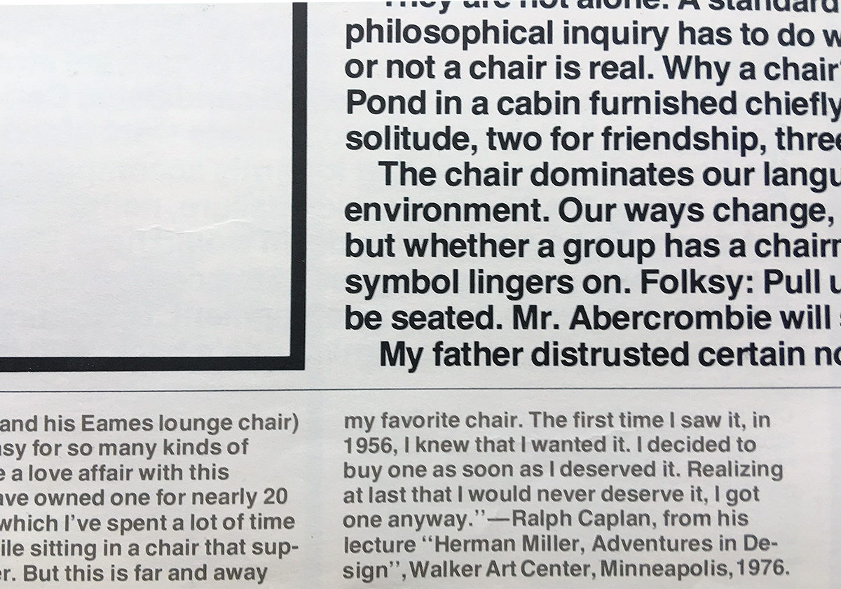 One of my favorite books is Chair by Peter Bradford. This is modernism. It is direct, true to materials, clear, minimal, and bold. The usage of Helvetica in only a few sizes and a couple of weights is relentless. Like Brutalist architecture, the design is not about dainty and delicate. It is raw and rugged, but remains flawlessly refined and elegant.