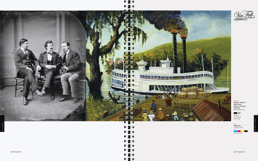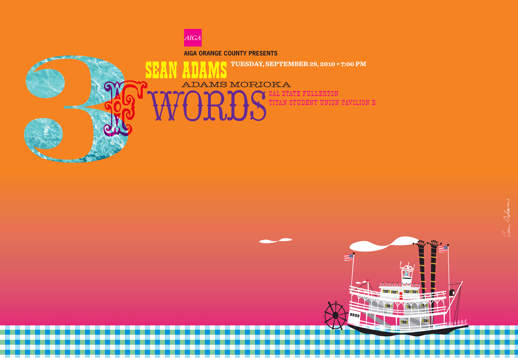 Maybe that’s my issue too. Noreen keeps telling me, “Sean, it’s not 1955. The Soviet Union is not planning a strike. You can stop digging that bomb shelter.” Or, maybe I just like the way these riverboats look. Like Mark Twain said, "Riverboats look like floating wedding cakes." In the past few months I’ve been able to use riverboats on two projects. I made one for my lecture poster for AIGA Orange County, and I used a wonderful painting of another riverboat in the latest Mohawk Via promotion (to be released soon).