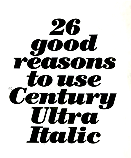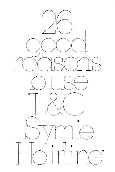 Whenever someone suggests the idea of a reality show of a design firm, I roll my eyes. It sounds exciting, and Mad Men is kind of that, but it would be like watching paint dry, or the NASA channel. Let me give you an example. Last week, Nathan and I were talking about photo-type and some of the lost display fonts. Exciting, huh? This discussion led me to the Art Center Library and I checked out a book on ITC fonts from 1980. When I was in school, I was told that Herb Lubalin, one of ITC’s founders, was rotting in hell for ITC Garamond. And I’ve walked around with a snobby disdain for all ITC fonts since then. Like this, “Well, I’m sure they work for some people, but I could never.”