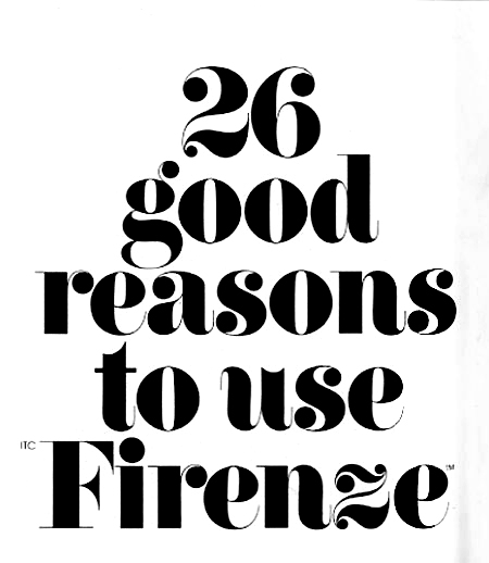 Something, however, has gone horribly wrong. I look at Lubalin and Tom Carnase's work and find myself loving the flamboyant thicks and thins, swashes, and extreme x-height. I have a strong desire to use ITC Firenze on everything, including body copy. Is that so wrong? What's next, green shag carpeting, plaid polyester suits, and mauve?