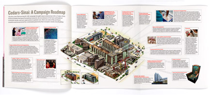I love working with clients who are smart. Duh. They know what they want, their business, audience, and how a design job happens. Cedars-Sinai is one of those for us. We’ve worked on several projects for them and each project continues to be challenging and rewarding intellectually and aesthetically. We recently completed the Cedars-Sinai magazine, Discoveries. Now I can boast about it, because I had only a part in its creation. Everyone in the office from Nathan, Monica, Chris, Terry, and Noreen worked to make a fantastic publication. Monica said it best when I asked her why she was happy with the final project, “This project was one of those wonderful examples of transcending the designer/client boundary and really working together as a team. We collaborated directly with Laura Grunberger at Cedars-Sinai and her staff; sharing ideas, refining concepts, and determining the vision for the magazine as a whole.” Monica clearly has a far better talent for articulation than I.