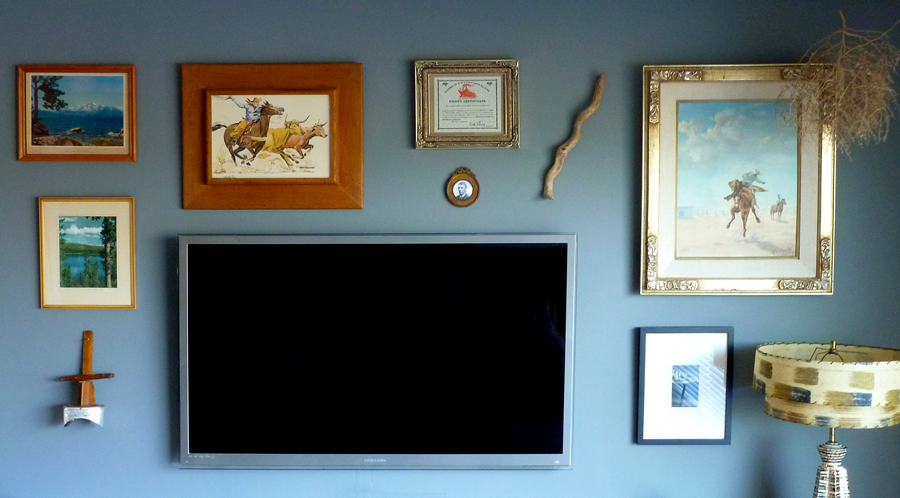 How many times have you come home after a long day to find all of your wall hangings crooked? I don’t know if tiny earthquakes cause this, or someone is purposely making them crooked to prove they’ve been cleaned. If I had one massive painting on each wall, then it wouldn’t be a problem. But I have photos and paintings specifically arranged. I plan the groupings out on the computer, measure with my Schaedler ruler (if you don’t own one, stop right now and buy one) and make sure everything is square with a level. This is not OCD.