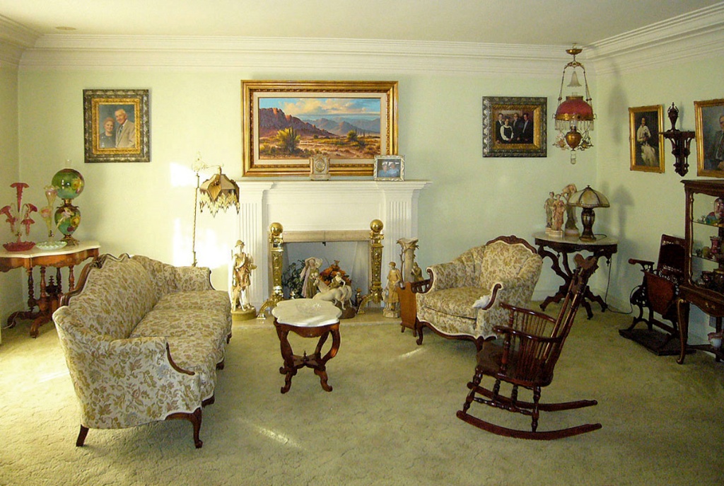 After my grandparents passed away, we cleaned up their house, fixed the heater, bought new beds and linens, and left. The plan was to visit as a family every month or so. But everyone gets busy and the months pass. My sister, Heather, moved to Hawaii. This made get-togethers even harder. We still manage to get together as a group each July 4th. It's odd to open the door and find the hermetically sealed house, virtually unchanged since my grandmother redecorated in the late 1960s. We've considered splitting up the furniture, art, and objects, but there's so much we have no idea where to start. And my grandmother's style ran toward the western Victorian genre. I've considered bringing one of the sofa sets, marble topped tables, and Victorian gas lamps home, but I think I would have an odd result. At best, the design would have the feeling of the Haunted Mansion, at worst, Liberace.
