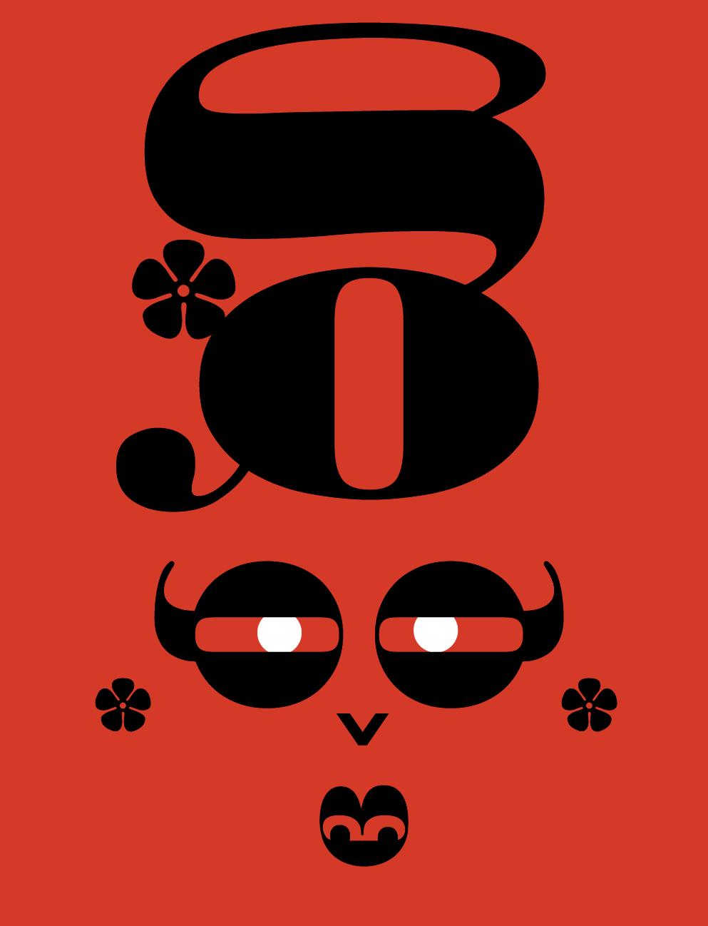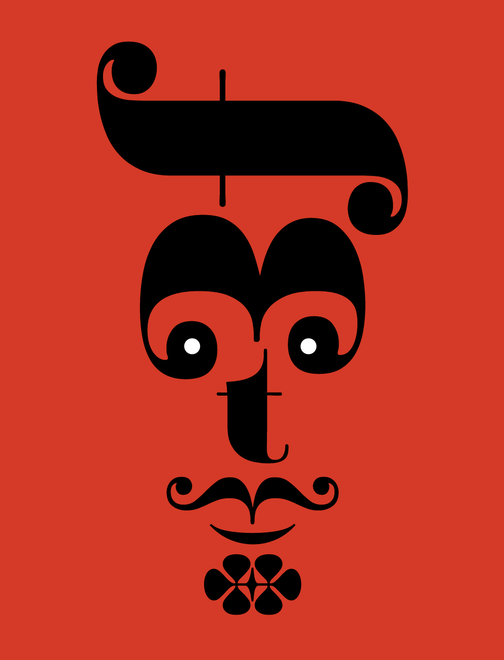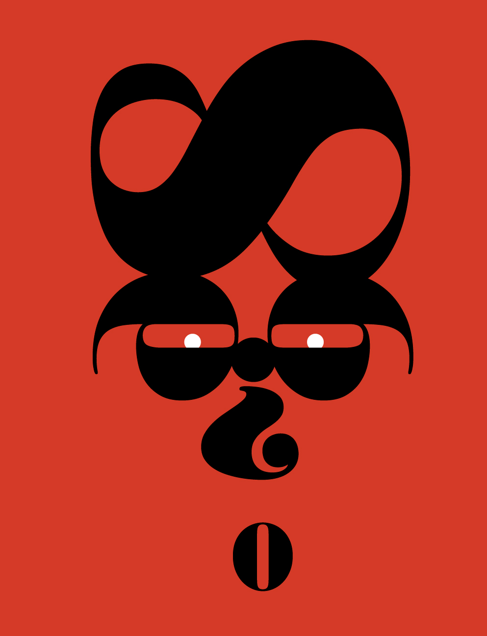Every day, I drive by a billboard in Hollywood of a Groucho Marx caricature. I have no idea what it is for, but it’s the best part of the drive. As I sat in traffic staring at the billboard, I realized that the Ratio Modern parentheses are like a wonderful moustache, and I couldn’t let this opportunity pass. This opened the Pandora’s Box of other type characters (no pun intended). I recall a sculptor telling me, “The figure is trapped in the marble. I only set it free.” And it turned out that this was true with typography. The barbershop quartet guy, surprised woman, uptight starlet with a beehive, Don Quixote dapper dude, and cranky queen all were alive hiding inside the letters.